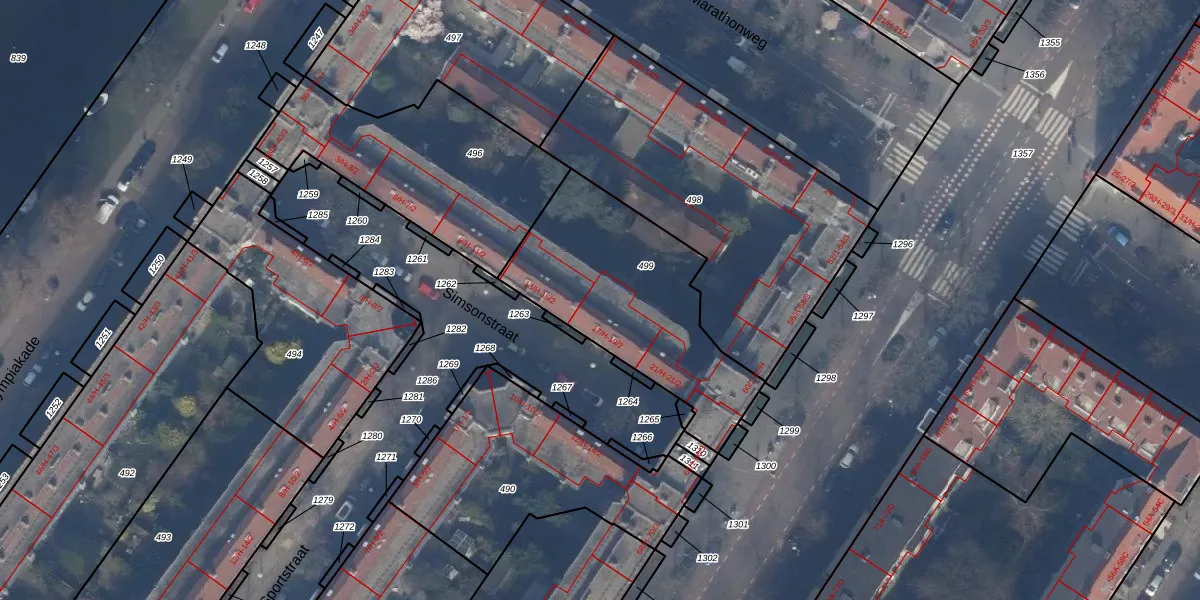 Het adres is gelegen op perceel 499 in de sectie AC en de kadastrale gemeente Amsterdam. De kadastrale aanduiding is aldus ASD24-AC-499. De gemiddelde perceelgrootte in Amsterdam is 1361,91 m². Dit perceel is kleiner: de perceeloppervlakte bedraagt 853 m². Het grootste perceel in de kadastrale gemeente is 5,8 ha. Het kleinste perceel heeft een oppervlakte van 1 m². Er zijn 23 adressen aanwezig op het perceel. De huidige grenzen van het perceel zijn digitaal in de Basisregistratie Kadaster (BRK) geregistreerd op 30-11-2010.