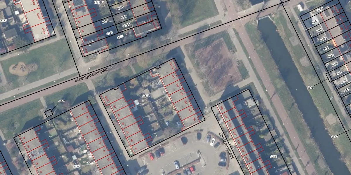 Sinderenstraat 109 is gelegen op kadastraal perceel WPK02L2327. Deze kadastrale aanduiding is uniek en wordt gebruikt door het Kadaster om eigendomsrechten en andere zakelijke rechten vast te leggen. Het perceel maakt onderdeel uit van de kadastrale gemeente Weesperkarspel.