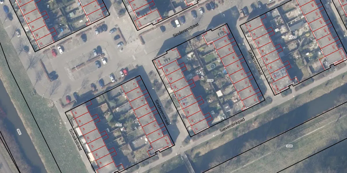 Het perceel waarop Sinderenstraat 32 staat heeft een oppervlakte van 2403 m². Dit is een zeer groot perceel. De perceeloppervlakte wordt geregistreerd door het Kadaster. Gedetailleerde informatie over de maten van dit perceel kunt u vinden in het rapport Kadastrale kaart met maatvoering van Sinderenstraat 32.