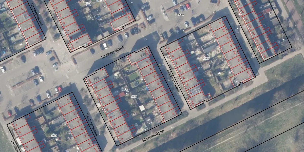 Het perceel waarop Sinderenstraat 66 staat heeft een oppervlakte van 2403 m². Dit is een zeer groot perceel. De perceeloppervlakte wordt geregistreerd door het Kadaster. Gedetailleerde informatie over de maten van dit perceel kunt u vinden in het rapport Kadastrale kaart met maatvoering van Sinderenstraat 66.