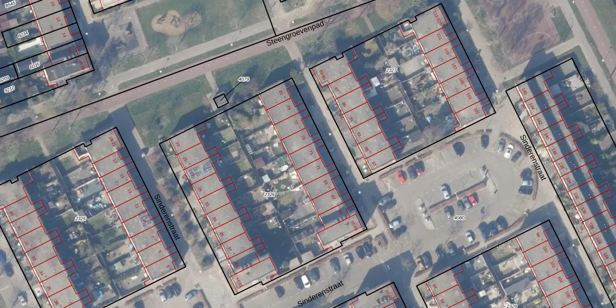 Het perceel waarop Sinderenstraat 73 staat heeft een oppervlakte van 2665 m². Dit is een zeer groot perceel. De perceeloppervlakte wordt geregistreerd door het Kadaster. Gedetailleerde informatie over de maten van dit perceel kunt u vinden in het rapport Kadastrale kaart met maatvoering van Sinderenstraat 73.