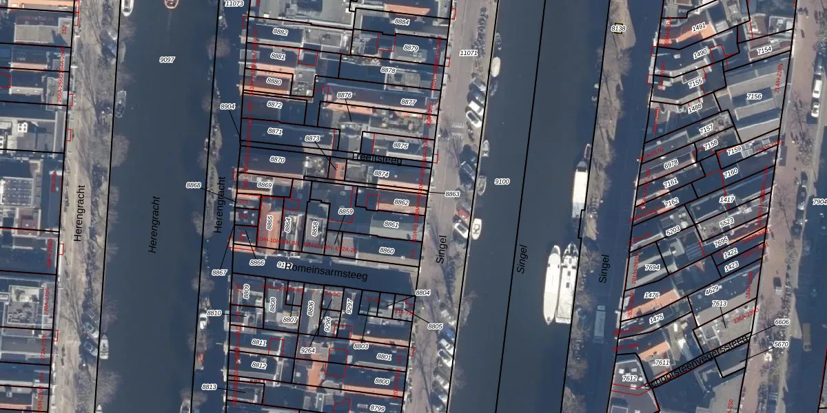 Het perceel waarop Singel 308-A staat heeft een oppervlakte van 88 m². Dit is een klein perceel. De perceeloppervlakte wordt geregistreerd door het Kadaster. Gedetailleerde informatie over de maten van dit perceel kunt u vinden in het rapport Kadastrale kaart met maatvoering van Singel 308-A.