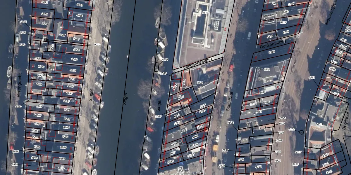 Het perceel waarop Singel 353-A staat heeft een oppervlakte van 43 m². Dit is een klein perceel. De perceeloppervlakte wordt geregistreerd door het Kadaster. Gedetailleerde informatie over de maten van dit perceel kunt u vinden in het rapport Kadastrale kaart met maatvoering van Singel 353-A.