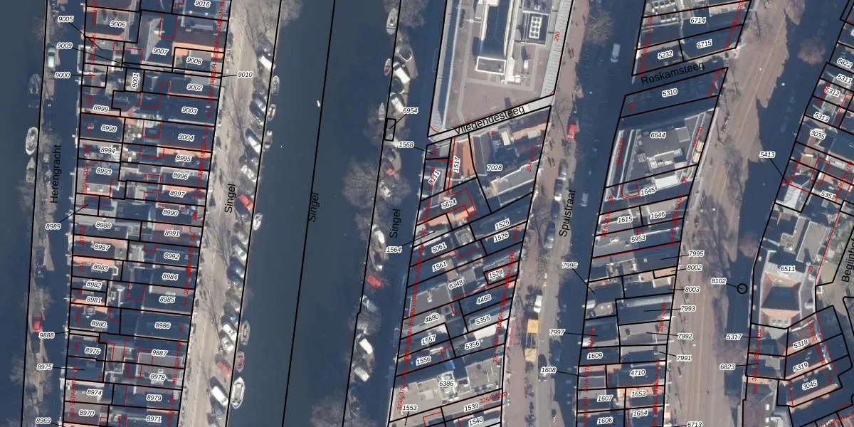 Het perceel waarop Singel 355 staat heeft een oppervlakte van 115 m². Dit is een middelgroot perceel. De perceeloppervlakte wordt geregistreerd door het Kadaster. Gedetailleerde informatie over de maten van dit perceel kunt u vinden in het rapport Kadastrale kaart met maatvoering van Singel 355.