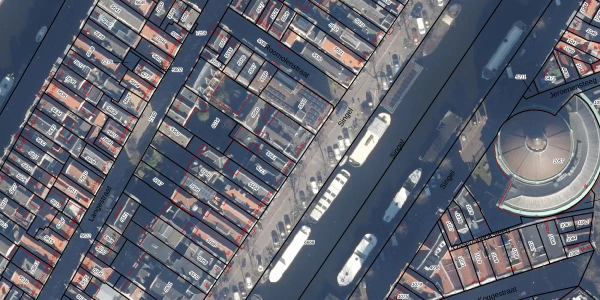 Het perceel waarop Singel 50-A staat heeft een oppervlakte van 518 m². Dit is een groot perceel. De perceeloppervlakte wordt geregistreerd door het Kadaster. Gedetailleerde informatie over de maten van dit perceel kunt u vinden in het rapport Kadastrale kaart met maatvoering van Singel 50-A.