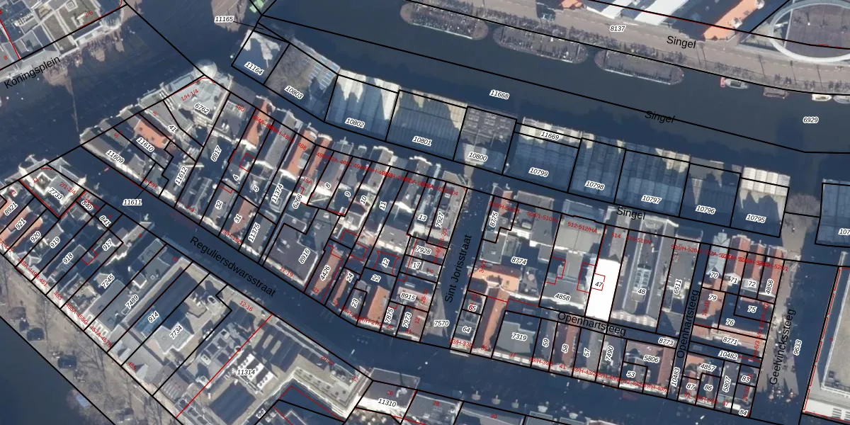 Het perceel waarop Singel 502-D staat heeft een oppervlakte van 65 m². Dit is een klein perceel. De perceeloppervlakte wordt geregistreerd door het Kadaster. Gedetailleerde informatie over de maten van dit perceel kunt u vinden in het rapport Kadastrale kaart met maatvoering van Singel 502-D.