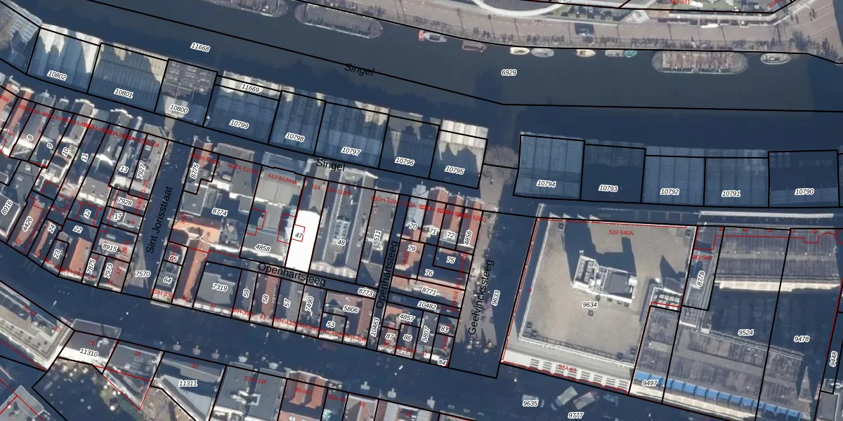 Het perceel waarop Singel 522-C staat heeft een oppervlakte van 47 m². Dit is een klein perceel. De perceeloppervlakte wordt geregistreerd door het Kadaster. Gedetailleerde informatie over de maten van dit perceel kunt u vinden in het rapport Kadastrale kaart met maatvoering van Singel 522-C.
