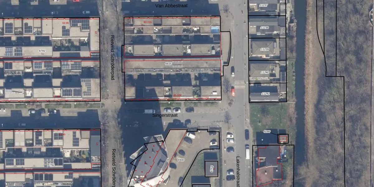 Het perceel waarop Singerstraat 101 staat heeft een oppervlakte van 2434 m². Dit is een zeer groot perceel. De perceeloppervlakte wordt geregistreerd door het Kadaster. Gedetailleerde informatie over de maten van dit perceel kunt u vinden in het rapport Kadastrale kaart met maatvoering van Singerstraat 101.