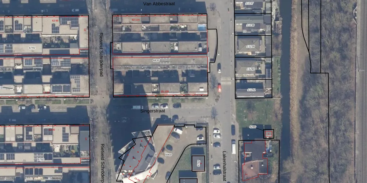 Het perceel waarop Singerstraat 103 staat heeft een oppervlakte van 2434 m². Dit is een zeer groot perceel. De perceeloppervlakte wordt geregistreerd door het Kadaster. Gedetailleerde informatie over de maten van dit perceel kunt u vinden in het rapport Kadastrale kaart met maatvoering van Singerstraat 103.