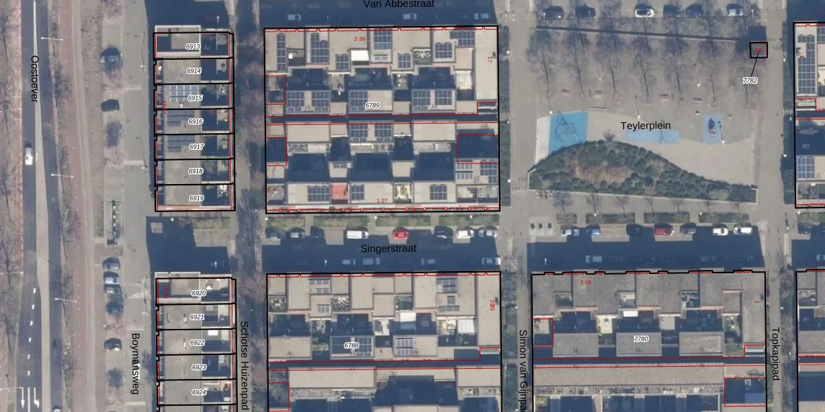 Het perceel waarop Singerstraat 17 staat heeft een oppervlakte van 2544 m². Dit is een zeer groot perceel. De perceeloppervlakte wordt geregistreerd door het Kadaster. Gedetailleerde informatie over de maten van dit perceel kunt u vinden in het rapport Kadastrale kaart met maatvoering van Singerstraat 17.
