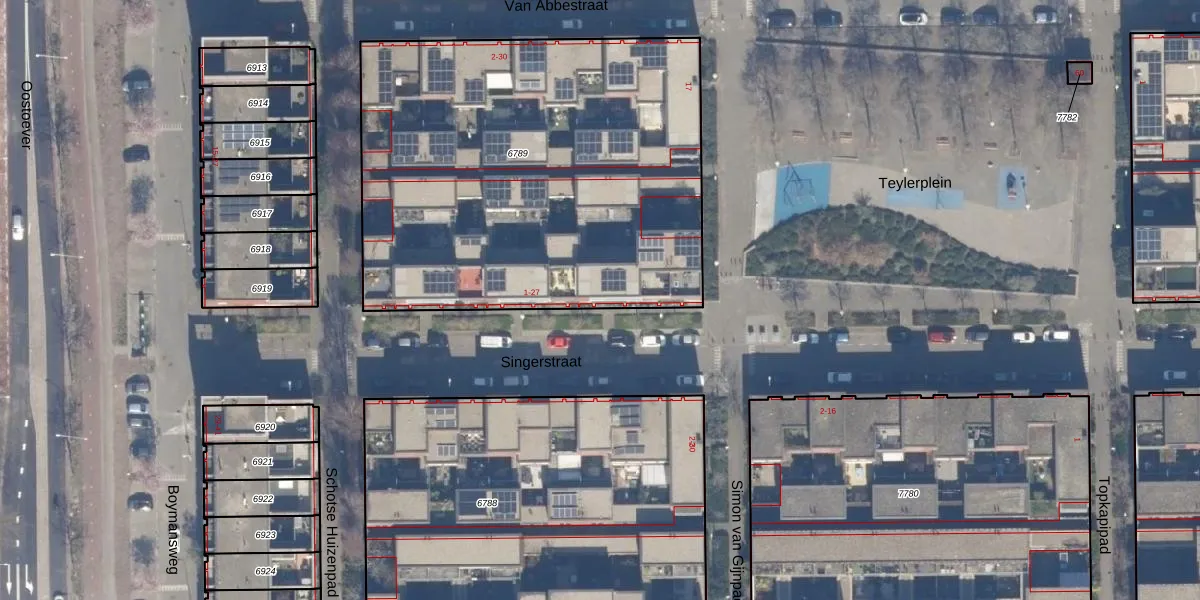 Het perceel waarop Singerstraat 19 staat heeft een oppervlakte van 2544 m². Dit is een zeer groot perceel. De perceeloppervlakte wordt geregistreerd door het Kadaster. Gedetailleerde informatie over de maten van dit perceel kunt u vinden in het rapport Kadastrale kaart met maatvoering van Singerstraat 19.