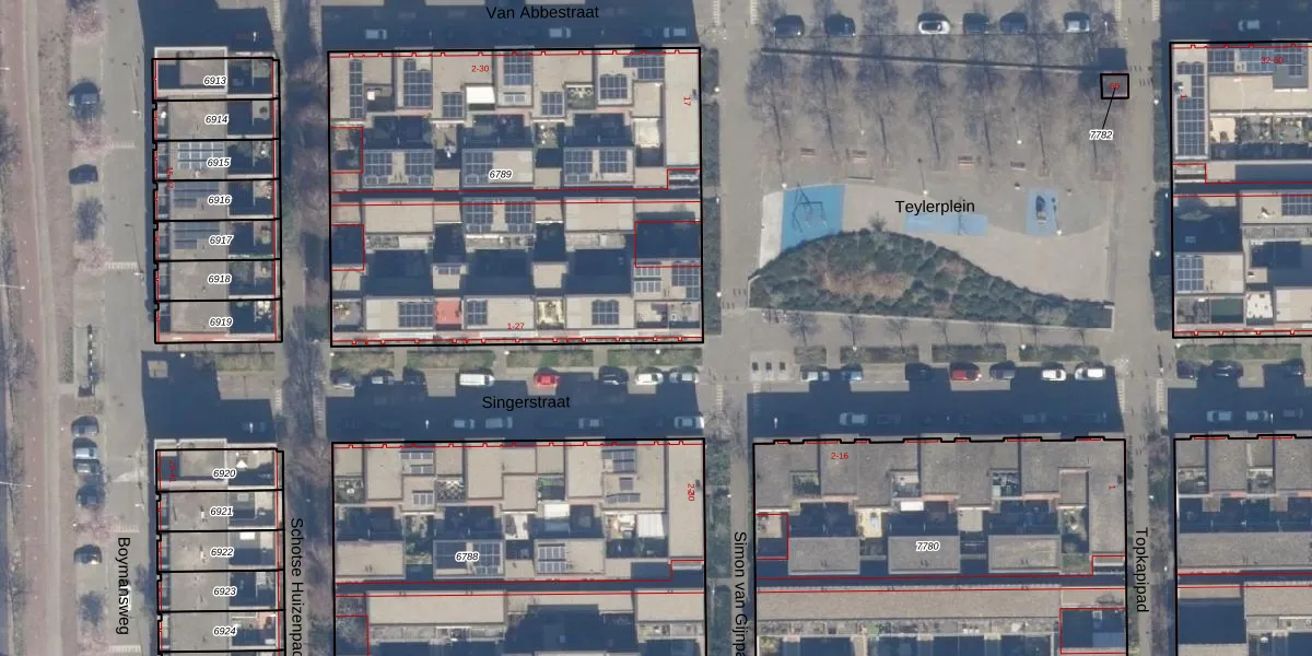 Het perceel waarop Singerstraat 25 staat heeft een oppervlakte van 2544 m². Dit is een zeer groot perceel. De perceeloppervlakte wordt geregistreerd door het Kadaster. Gedetailleerde informatie over de maten van dit perceel kunt u vinden in het rapport Kadastrale kaart met maatvoering van Singerstraat 25.