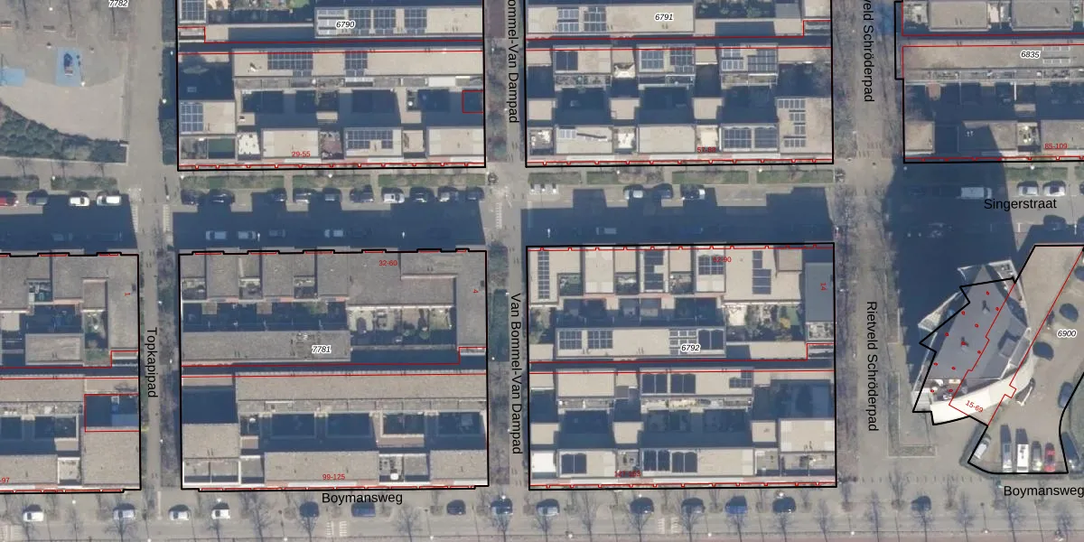 Het perceel waarop Singerstraat 62 staat heeft een oppervlakte van 2544 m². Dit is een zeer groot perceel. De perceeloppervlakte wordt geregistreerd door het Kadaster. Gedetailleerde informatie over de maten van dit perceel kunt u vinden in het rapport Kadastrale kaart met maatvoering van Singerstraat 62.