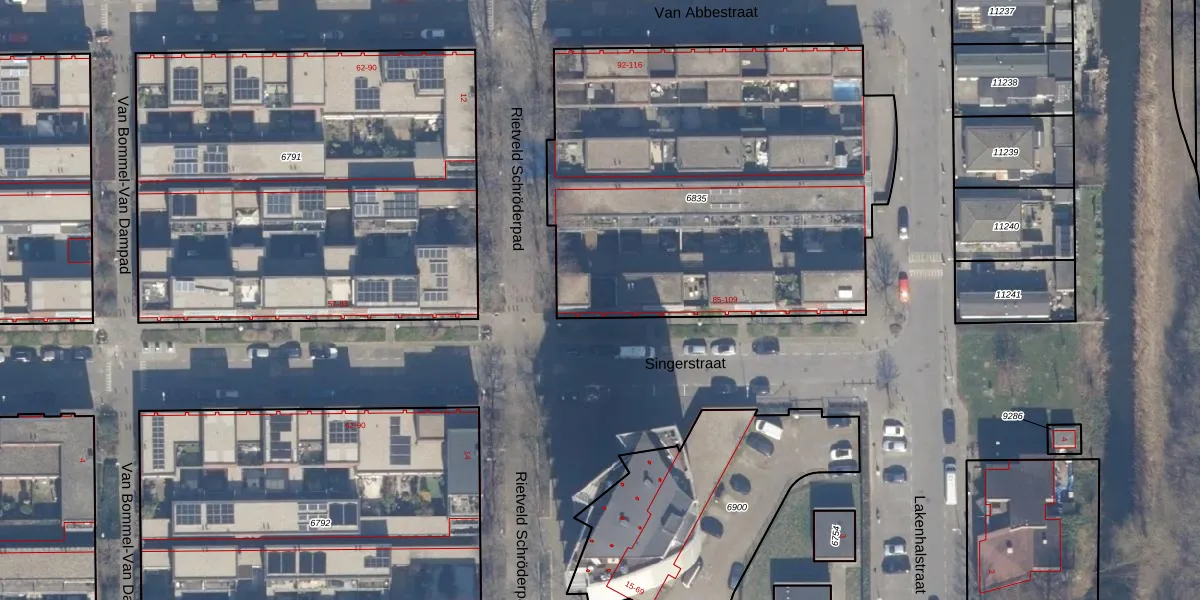 Het perceel waarop Singerstraat 87 staat heeft een oppervlakte van 2434 m². Dit is een zeer groot perceel. De perceeloppervlakte wordt geregistreerd door het Kadaster. Gedetailleerde informatie over de maten van dit perceel kunt u vinden in het rapport Kadastrale kaart met maatvoering van Singerstraat 87.