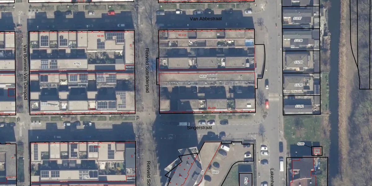 Het perceel waarop Singerstraat 91 staat heeft een oppervlakte van 2434 m². Dit is een zeer groot perceel. De perceeloppervlakte wordt geregistreerd door het Kadaster. Gedetailleerde informatie over de maten van dit perceel kunt u vinden in het rapport Kadastrale kaart met maatvoering van Singerstraat 91.