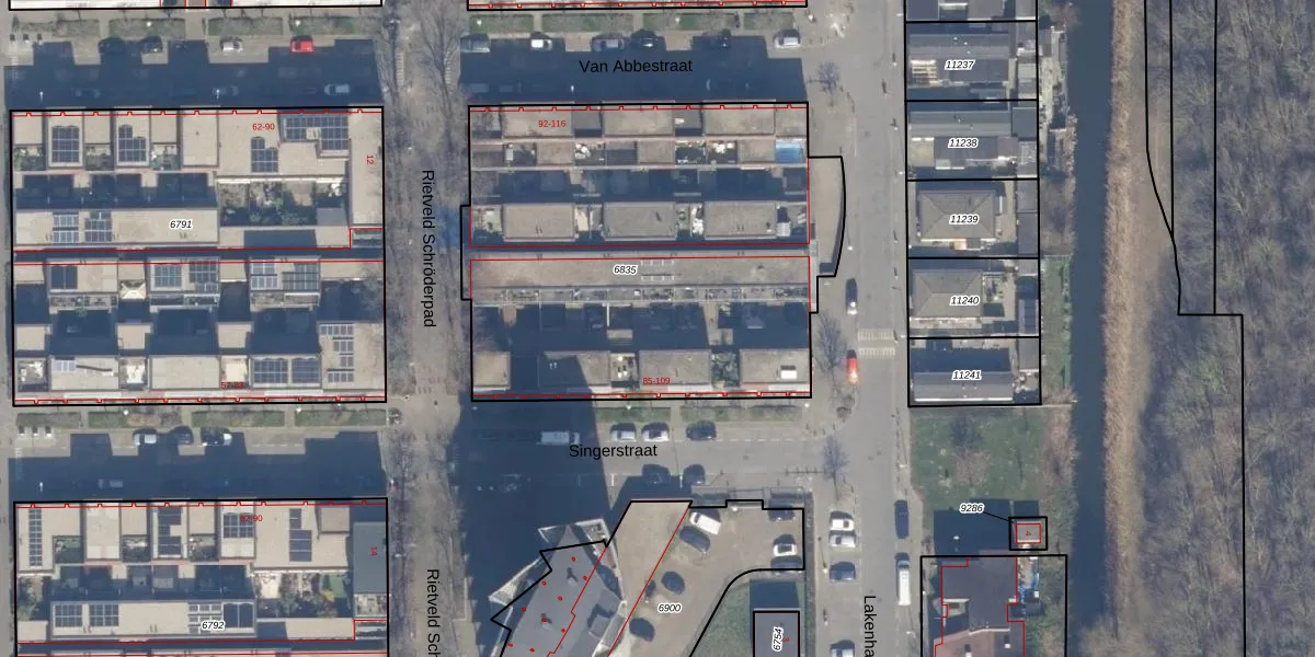 Het perceel waarop Singerstraat 99 staat heeft een oppervlakte van 2434 m². Dit is een zeer groot perceel. De perceeloppervlakte wordt geregistreerd door het Kadaster. Gedetailleerde informatie over de maten van dit perceel kunt u vinden in het rapport Kadastrale kaart met maatvoering van Singerstraat 99.