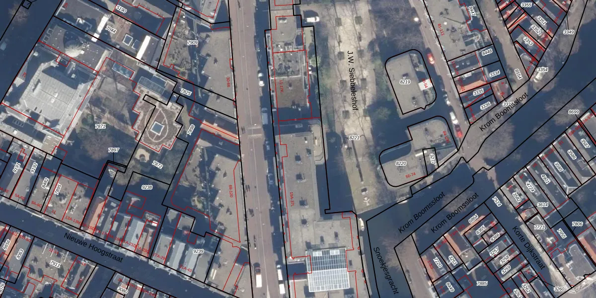 Het perceel waarop Sint Antoniesbreestraat 21-D staat heeft een oppervlakte van 3820 m². Dit is een zeer groot perceel. De perceeloppervlakte wordt geregistreerd door het Kadaster. Gedetailleerde informatie over de maten van dit perceel kunt u vinden in het rapport Kadastrale kaart met maatvoering van Sint Antoniesbreestraat 21-D.