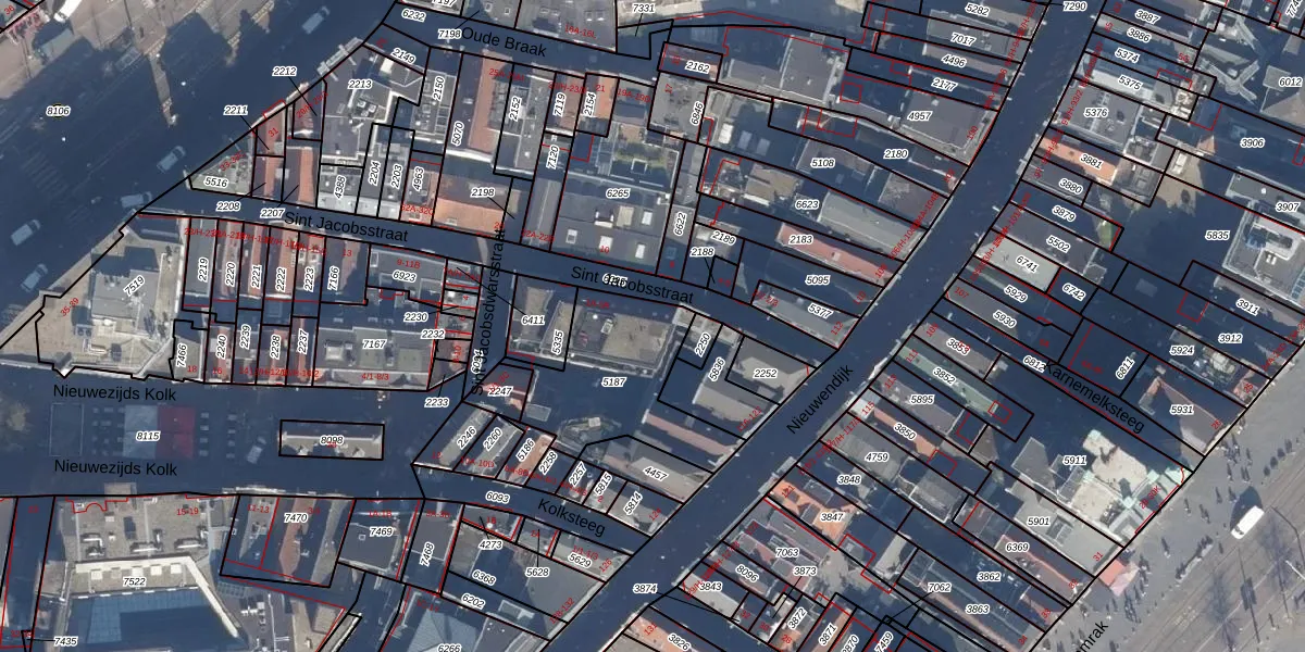 Sint Jacobsstraat 1-F is gelegen op kadastraal perceel ASD04F5187. Deze kadastrale aanduiding is uniek en wordt gebruikt door het Kadaster om eigendomsrechten en andere zakelijke rechten vast te leggen. Het perceel maakt onderdeel uit van de kadastrale gemeente Amsterdam.