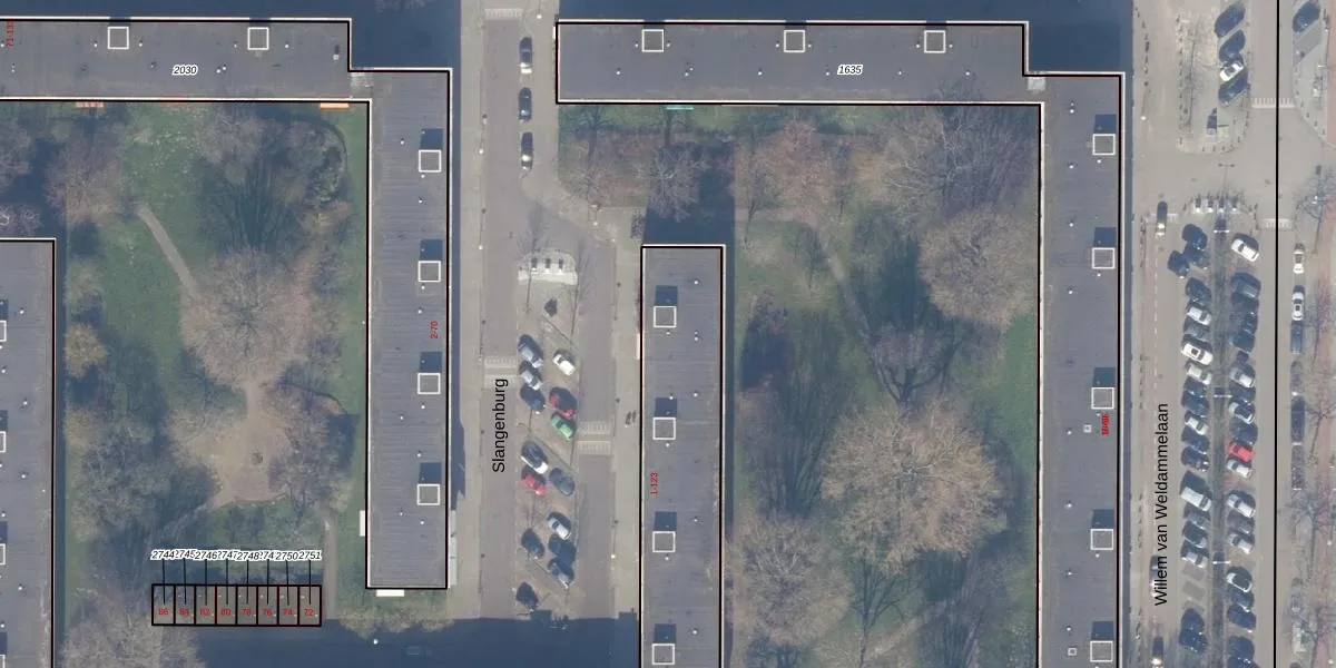 Het perceel waarop Slangenburg 7 staat heeft een oppervlakte van 1750 m². Dit is een zeer groot perceel. De perceeloppervlakte wordt geregistreerd door het Kadaster. Gedetailleerde informatie over de maten van dit perceel kunt u vinden in het rapport Kadastrale kaart met maatvoering van Slangenburg 7.