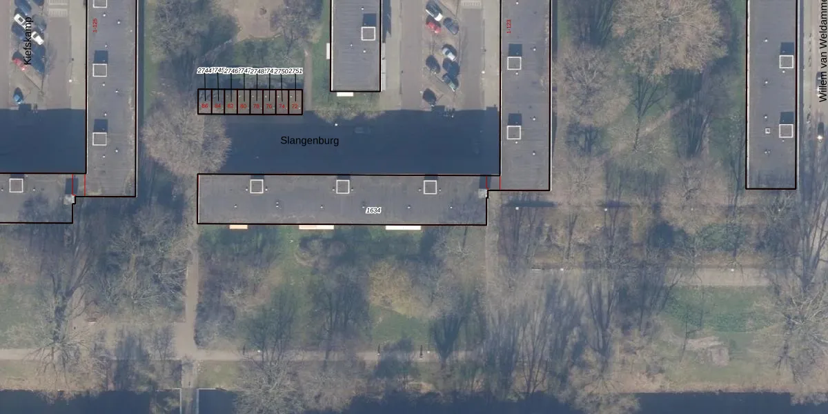 Het perceel waarop Slangenburg 83 staat heeft een oppervlakte van 1750 m². Dit is een zeer groot perceel. De perceeloppervlakte wordt geregistreerd door het Kadaster. Gedetailleerde informatie over de maten van dit perceel kunt u vinden in het rapport Kadastrale kaart met maatvoering van Slangenburg 83.