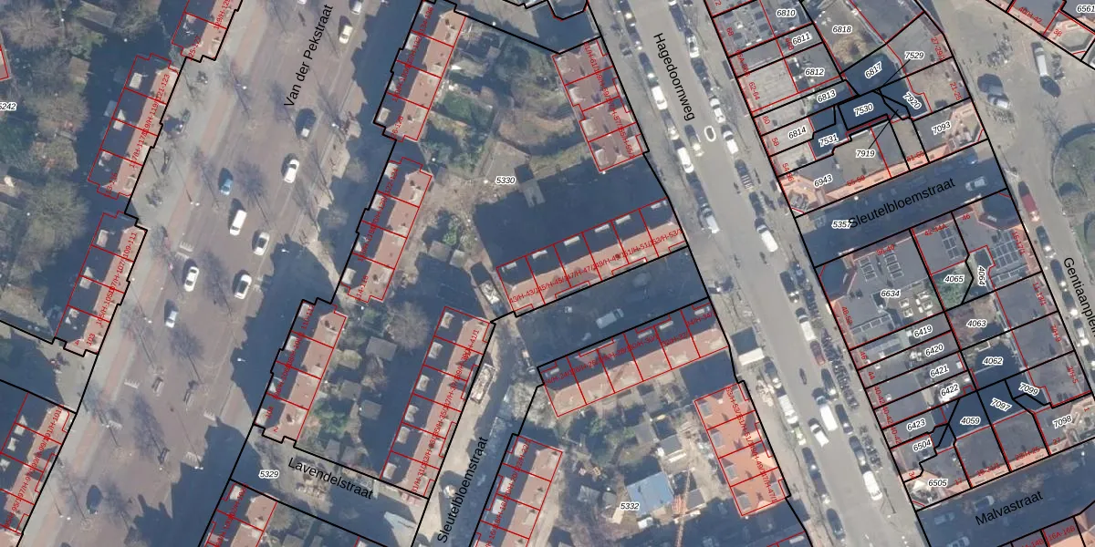 Het perceel waarop Sleutelbloemstraat 45-H staat heeft een oppervlakte van 3526 m². Dit is een zeer groot perceel. De perceeloppervlakte wordt geregistreerd door het Kadaster. Gedetailleerde informatie over de maten van dit perceel kunt u vinden in het rapport Kadastrale kaart met maatvoering van Sleutelbloemstraat 45-H.