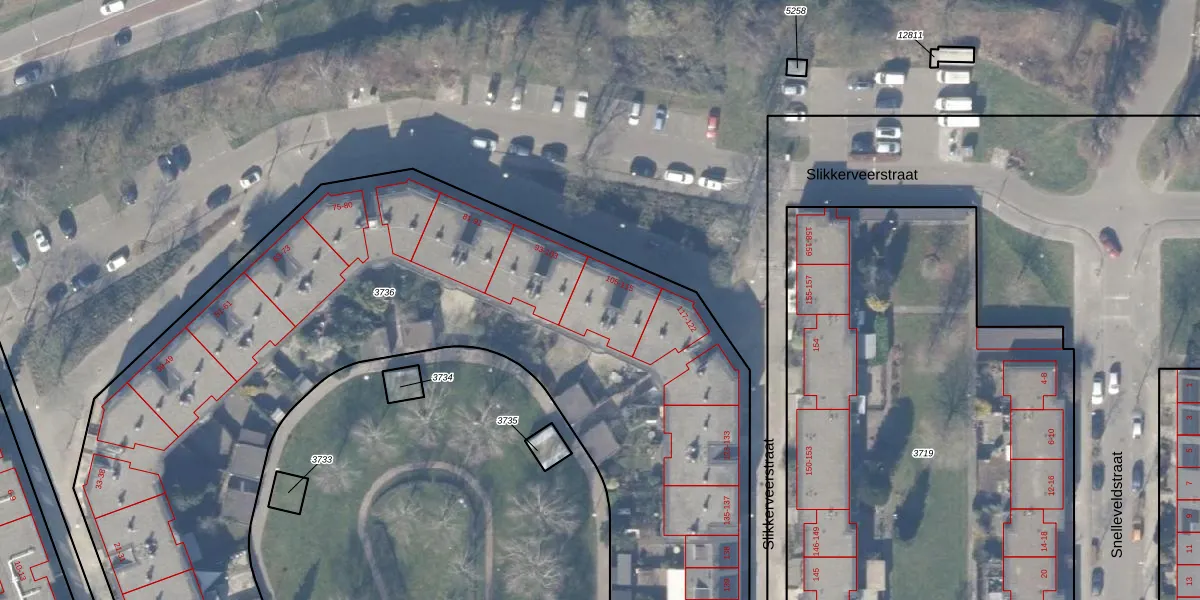 Het perceel waarop Slikkerveerstraat 109 staat heeft een oppervlakte van 6963 m². Dit is een zeer groot perceel. De perceeloppervlakte wordt geregistreerd door het Kadaster. Gedetailleerde informatie over de maten van dit perceel kunt u vinden in het rapport Kadastrale kaart met maatvoering van Slikkerveerstraat 109.