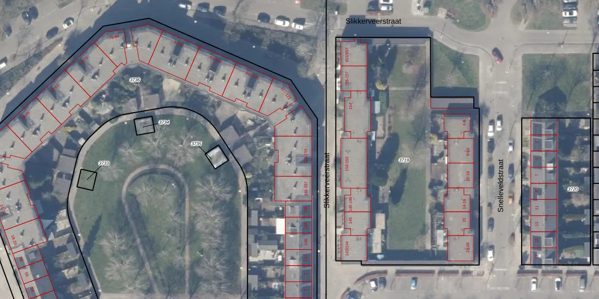 Het perceel waarop Slikkerveerstraat 123 staat heeft een oppervlakte van 6963 m². Dit is een zeer groot perceel. De perceeloppervlakte wordt geregistreerd door het Kadaster. Gedetailleerde informatie over de maten van dit perceel kunt u vinden in het rapport Kadastrale kaart met maatvoering van Slikkerveerstraat 123.