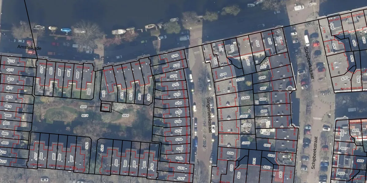 Het adres is gelegen op perceel 5253 in de sectie V en de kadastrale gemeente Amsterdam. De kadastrale aanduiding is aldus ASD18-V-5253. Het perceel is 90 m² groot. Dat is kleiner dan de gemiddelde perceeloppervlakte in Amsterdam, dat op 559,23 m² ligt. De grootste perceeloppervlakte in de kadastrale gemeente is 12,5 ha. De kleinste oppervlakte bedraagt 0 m². Op het perceel liggen in totaal 3 adressen. De huidige grenzen van het perceel zijn digitaal in de Basisregistratie Kadaster (BRK) geregistreerd op 08-11-2006.