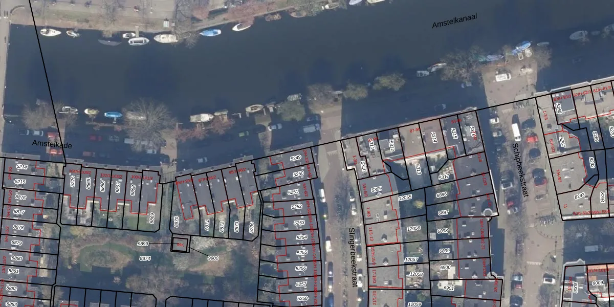 Het adres is gelegen op perceel 5249 in de sectie V en de kadastrale gemeente Amsterdam. De kadastrale aanduiding is aldus ASD18-V-5249. Het perceel is 99 m² groot. Dat is kleiner dan de gemiddelde perceeloppervlakte in Amsterdam, dat op 559,23 m² ligt. Het kleinste perceel in de kadastrale gemeente is 0 m² groot. De grootste perceeloppervlakte is 12,5 ha. Op het perceel liggen in totaal 3 adressen. De huidige grenzen van het perceel zijn digitaal in de Basisregistratie Kadaster (BRK) geregistreerd op 08-11-2006.