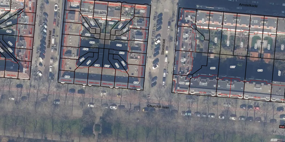 Sloestraat 12-1 is gelegen op kadastraal perceel ASD18V9734. Deze kadastrale aanduiding is uniek en wordt gebruikt door het Kadaster om eigendomsrechten en andere zakelijke rechten vast te leggen. Het perceel maakt onderdeel uit van de kadastrale gemeente Amsterdam.