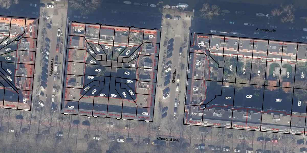 Sloestraat 8-H is gelegen op kadastraal perceel ASD18V9732. Deze kadastrale aanduiding is uniek en wordt gebruikt door het Kadaster om eigendomsrechten en andere zakelijke rechten vast te leggen. Het perceel maakt onderdeel uit van de kadastrale gemeente Amsterdam.