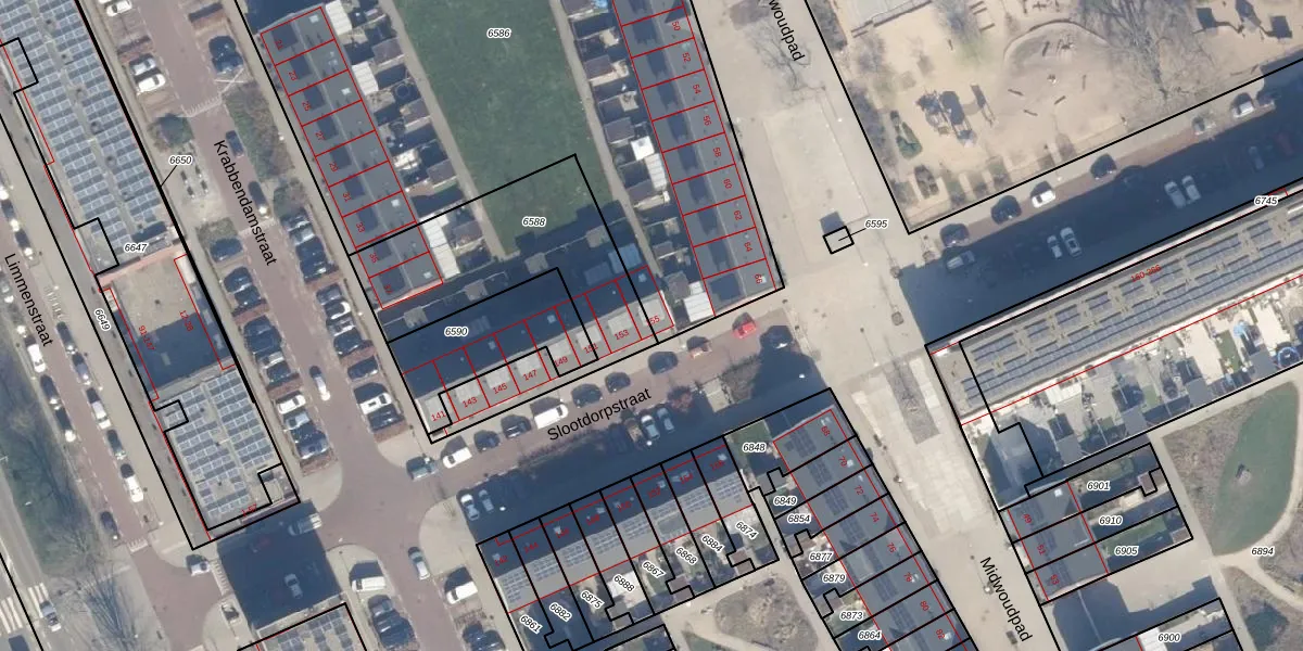 Slootdorpstraat 155 is gelegen op kadastraal perceel ASD31AL6586. Deze kadastrale aanduiding is uniek en wordt gebruikt door het Kadaster om eigendomsrechten en andere zakelijke rechten vast te leggen. Het perceel maakt onderdeel uit van de kadastrale gemeente Amsterdam.