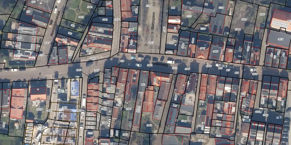 Gebruik de zoekbalk of klik op een perceel voor informatie over de adressen binnen dit perceel.