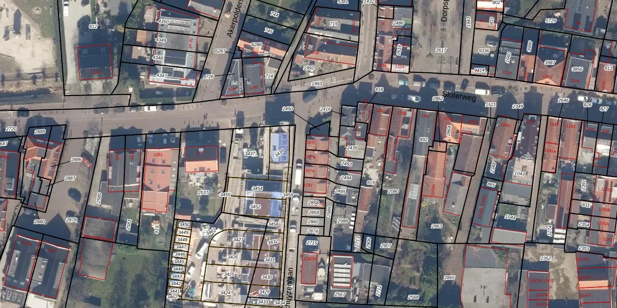 Gebruik de zoekbalk of klik op een perceel voor informatie over de adressen binnen dit perceel.