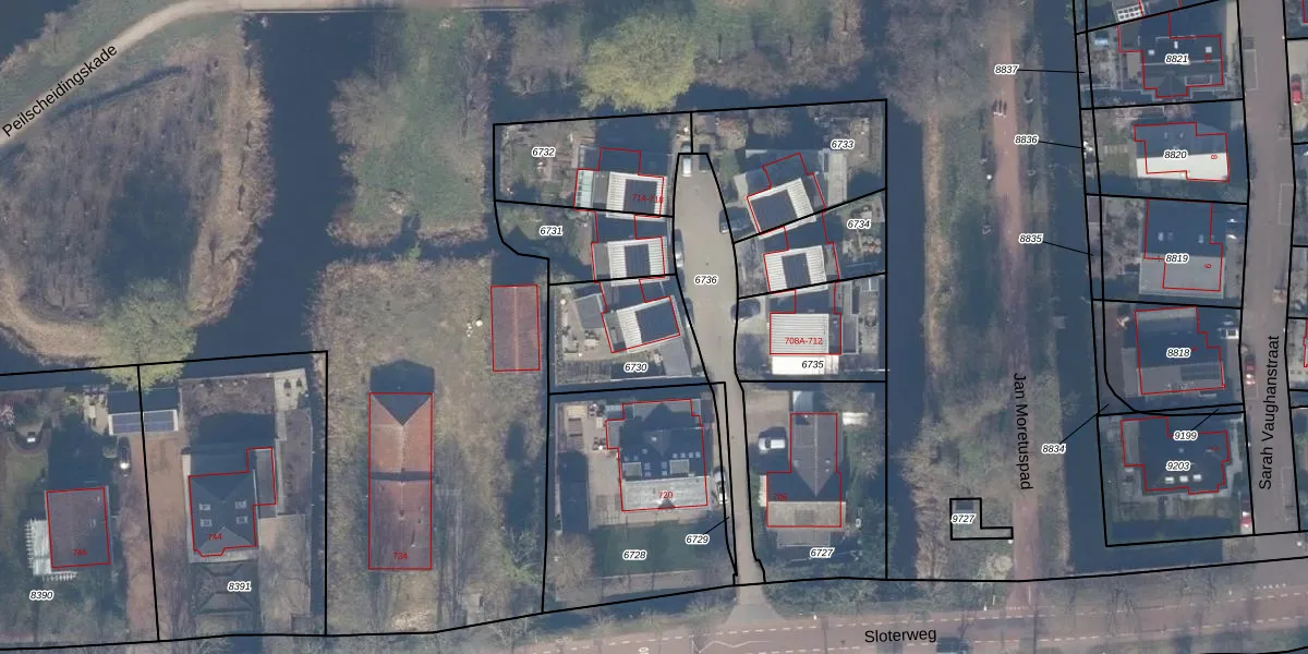 Sloterweg 718 is gelegen op kadastraal perceel STN02E6730. Deze kadastrale aanduiding is uniek en wordt gebruikt door het Kadaster om eigendomsrechten en andere zakelijke rechten vast te leggen. Het perceel maakt onderdeel uit van de kadastrale gemeente Sloten Noord-Holland.