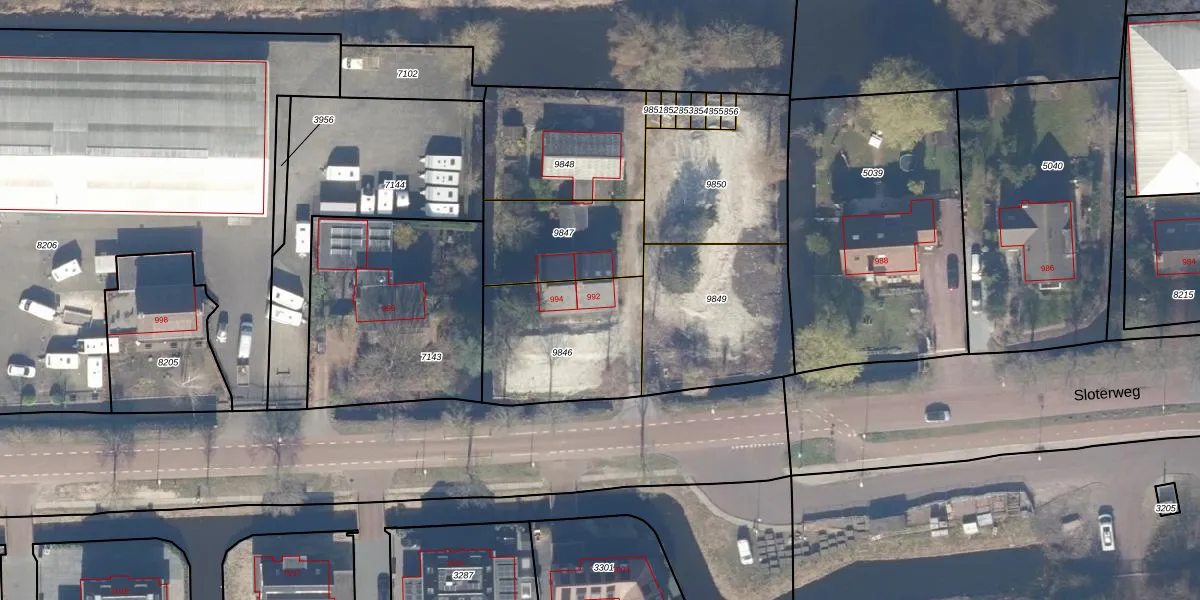Sloterweg 992 is gelegen op kadastraal perceel STN02E9846. Deze kadastrale aanduiding is uniek en wordt gebruikt door het Kadaster om eigendomsrechten en andere zakelijke rechten vast te leggen. Het perceel maakt onderdeel uit van de kadastrale gemeente Sloten Noord-Holland.