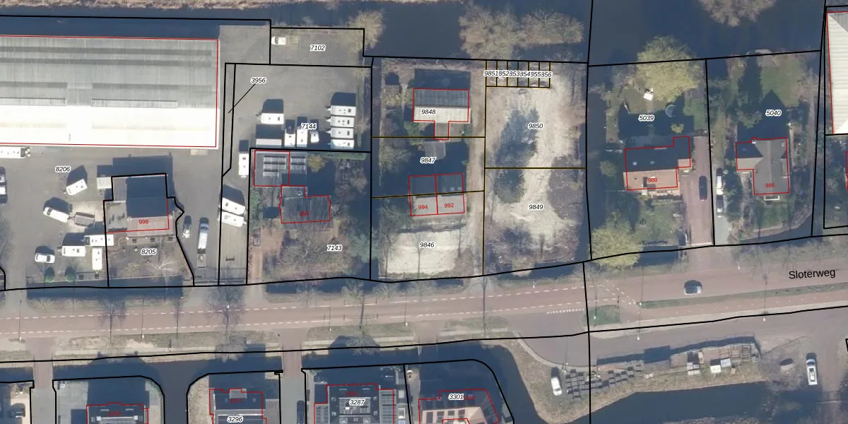 Sloterweg 994 is gelegen op kadastraal perceel STN02E9846. Deze kadastrale aanduiding is uniek en wordt gebruikt door het Kadaster om eigendomsrechten en andere zakelijke rechten vast te leggen. Het perceel maakt onderdeel uit van de kadastrale gemeente Sloten Noord-Holland.