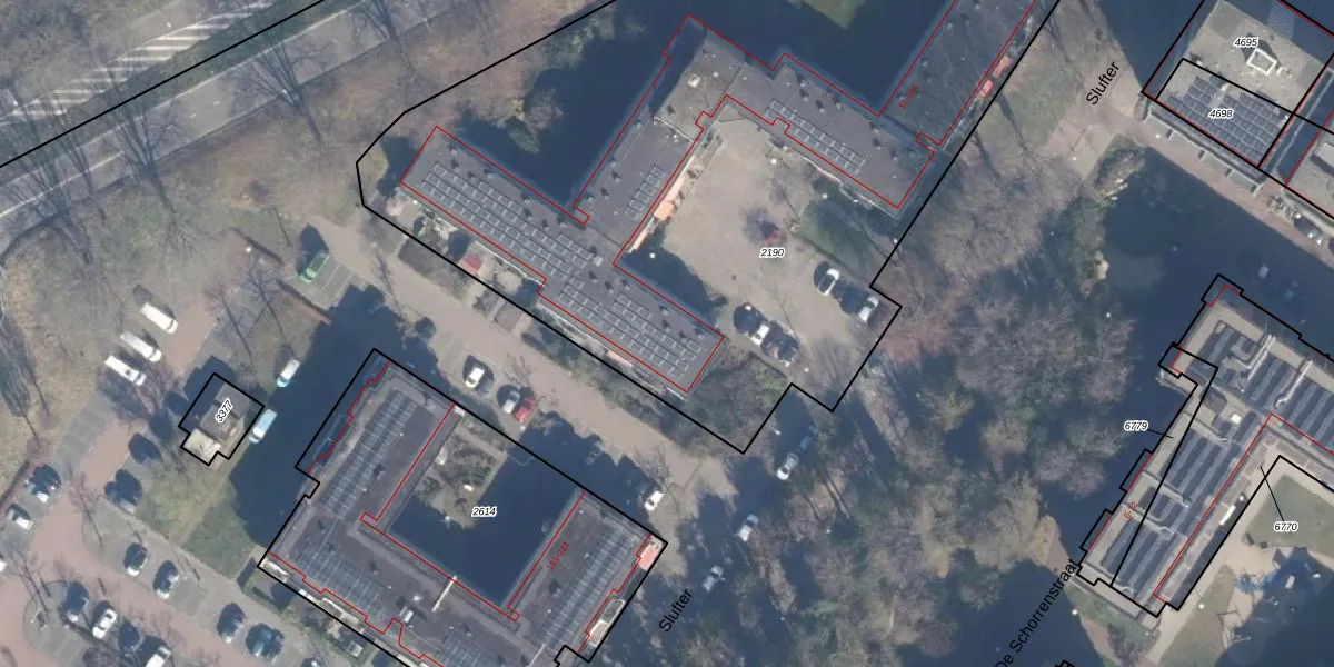 Het perceel waarop Slufter 19 staat heeft een oppervlakte van 4821 m². Dit is een zeer groot perceel. De perceeloppervlakte wordt geregistreerd door het Kadaster. Gedetailleerde informatie over de maten van dit perceel kunt u vinden in het rapport Kadastrale kaart met maatvoering van Slufter 19.