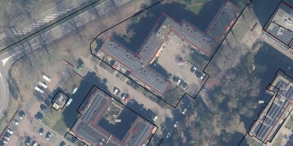 Het perceel waarop Slufter 21 staat heeft een oppervlakte van 4821 m². Dit is een zeer groot perceel. De perceeloppervlakte wordt geregistreerd door het Kadaster. Gedetailleerde informatie over de maten van dit perceel kunt u vinden in het rapport Kadastrale kaart met maatvoering van Slufter 21.