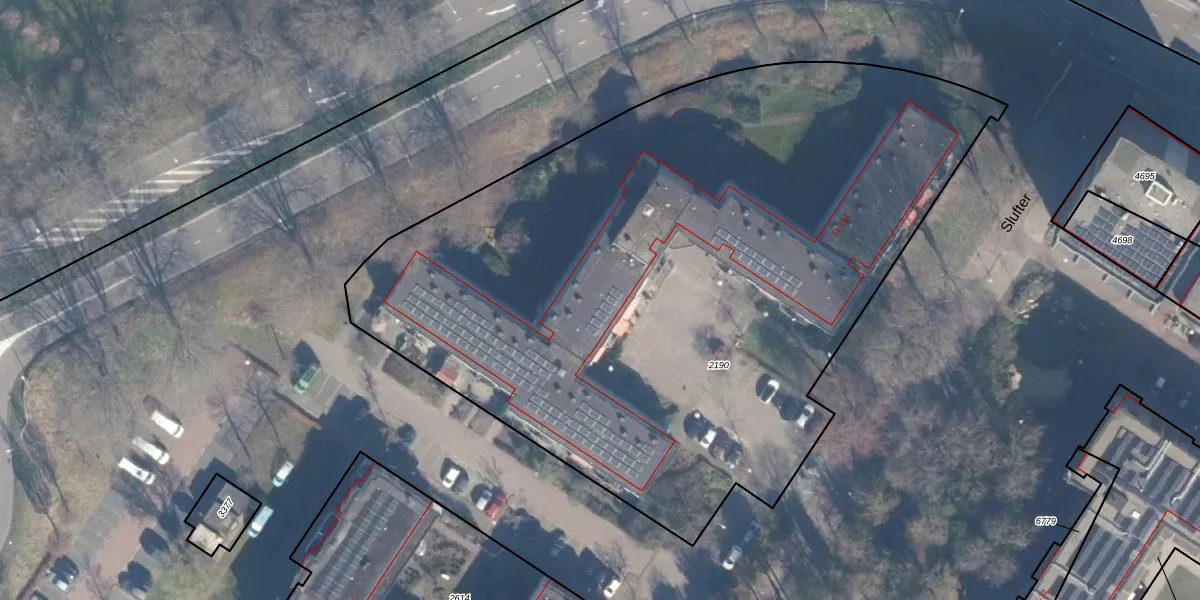 Het perceel waarop Slufter 77 staat heeft een oppervlakte van 4821 m². Dit is een zeer groot perceel. De perceeloppervlakte wordt geregistreerd door het Kadaster. Gedetailleerde informatie over de maten van dit perceel kunt u vinden in het rapport Kadastrale kaart met maatvoering van Slufter 77.