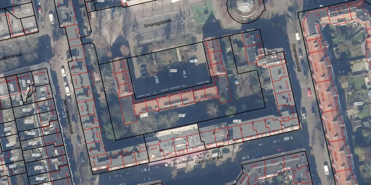 Smaragdplein 18-B is gelegen op kadastraal perceel ASD18V6927. Deze kadastrale aanduiding is uniek en wordt gebruikt door het Kadaster om eigendomsrechten en andere zakelijke rechten vast te leggen. Het perceel maakt onderdeel uit van de kadastrale gemeente Amsterdam.