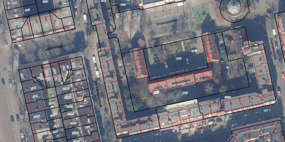 Smaragdplein 6-H is gelegen op kadastraal perceel ASD18V6927. Deze kadastrale aanduiding is uniek en wordt gebruikt door het Kadaster om eigendomsrechten en andere zakelijke rechten vast te leggen. Het perceel maakt onderdeel uit van de kadastrale gemeente Amsterdam.
