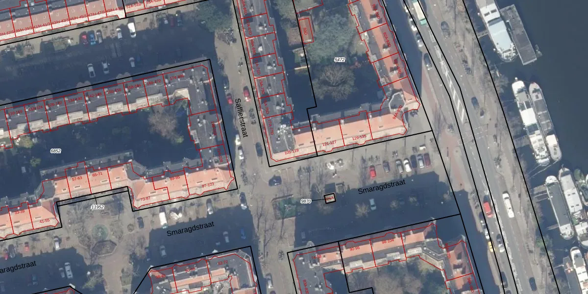 Smaragdstraat 111 is gelegen op kadastraal perceel ASD18V6127. Deze kadastrale aanduiding is uniek en wordt gebruikt door het Kadaster om eigendomsrechten en andere zakelijke rechten vast te leggen. Het perceel maakt onderdeel uit van de kadastrale gemeente Amsterdam.