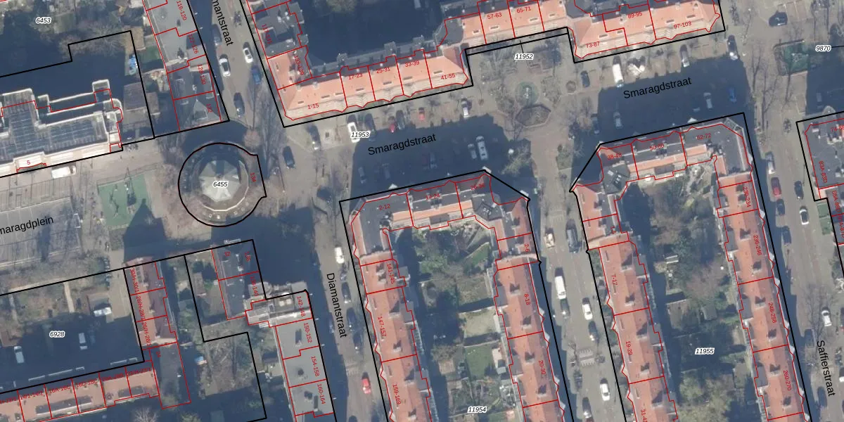 Smaragdstraat 14 is gelegen op kadastraal perceel ASD18V11954. Deze kadastrale aanduiding is uniek en wordt gebruikt door het Kadaster om eigendomsrechten en andere zakelijke rechten vast te leggen. Het perceel maakt onderdeel uit van de kadastrale gemeente Amsterdam.