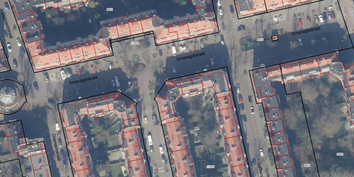 Smaragdstraat 42 is gelegen op kadastraal perceel ASD18V11955. Deze kadastrale aanduiding is uniek en wordt gebruikt door het Kadaster om eigendomsrechten en andere zakelijke rechten vast te leggen. Het perceel maakt onderdeel uit van de kadastrale gemeente Amsterdam.