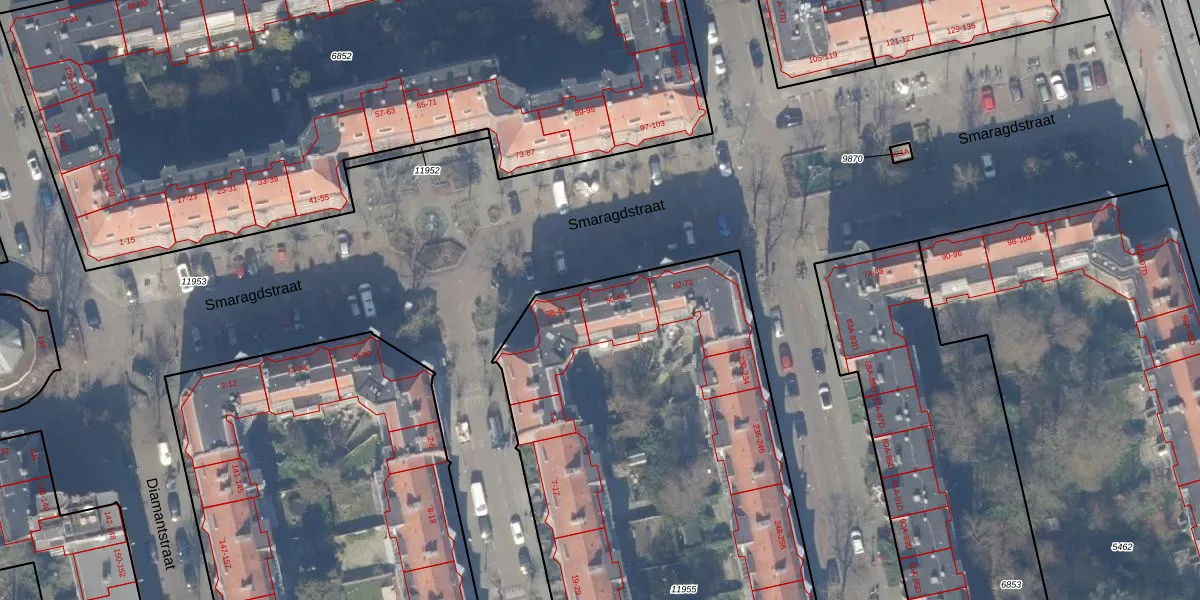 Smaragdstraat 52 is gelegen op kadastraal perceel ASD18V11955. Deze kadastrale aanduiding is uniek en wordt gebruikt door het Kadaster om eigendomsrechten en andere zakelijke rechten vast te leggen. Het perceel maakt onderdeel uit van de kadastrale gemeente Amsterdam.