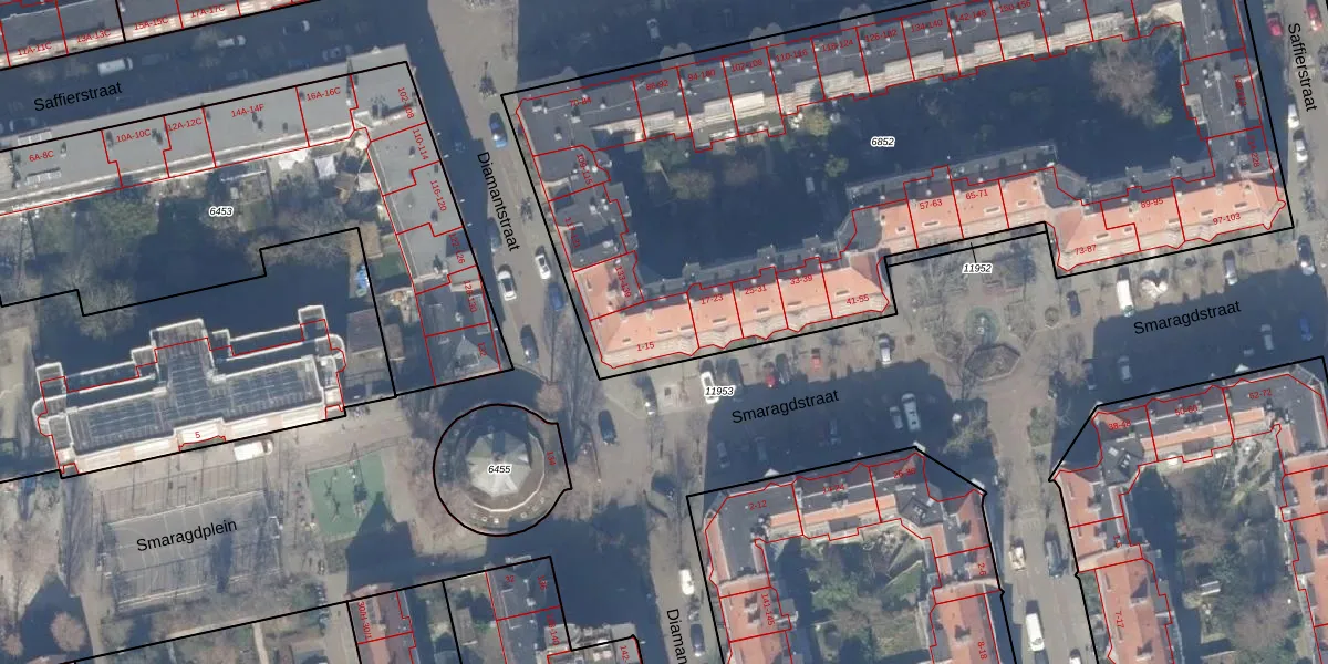 Smaragdstraat 7 is gelegen op kadastraal perceel ASD18V6852. Deze kadastrale aanduiding is uniek en wordt gebruikt door het Kadaster om eigendomsrechten en andere zakelijke rechten vast te leggen. Het perceel maakt onderdeel uit van de kadastrale gemeente Amsterdam.