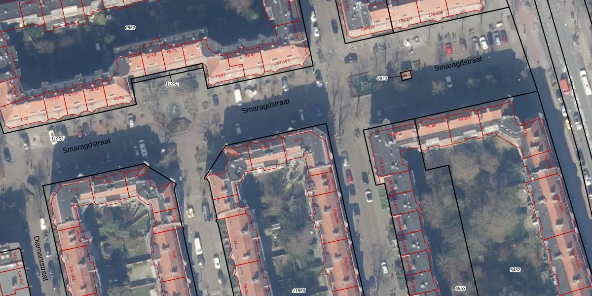 Smaragdstraat 72 is gelegen op kadastraal perceel ASD18V11955. Deze kadastrale aanduiding is uniek en wordt gebruikt door het Kadaster om eigendomsrechten en andere zakelijke rechten vast te leggen. Het perceel maakt onderdeel uit van de kadastrale gemeente Amsterdam.