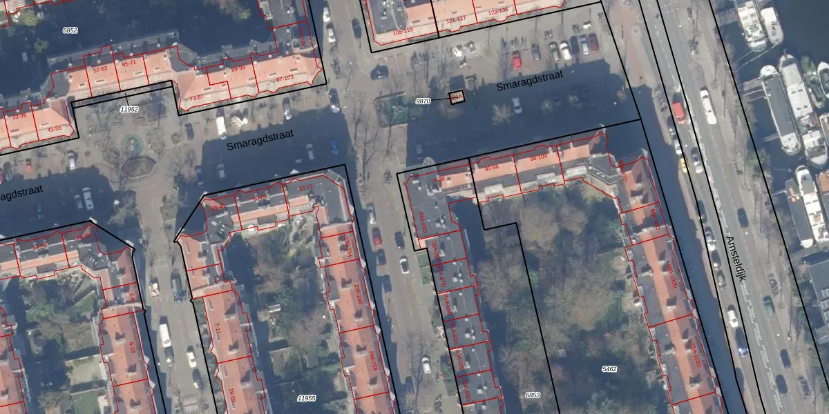 Smaragdstraat 74 is gelegen op kadastraal perceel ASD18V6853. Deze kadastrale aanduiding is uniek en wordt gebruikt door het Kadaster om eigendomsrechten en andere zakelijke rechten vast te leggen. Het perceel maakt onderdeel uit van de kadastrale gemeente Amsterdam.