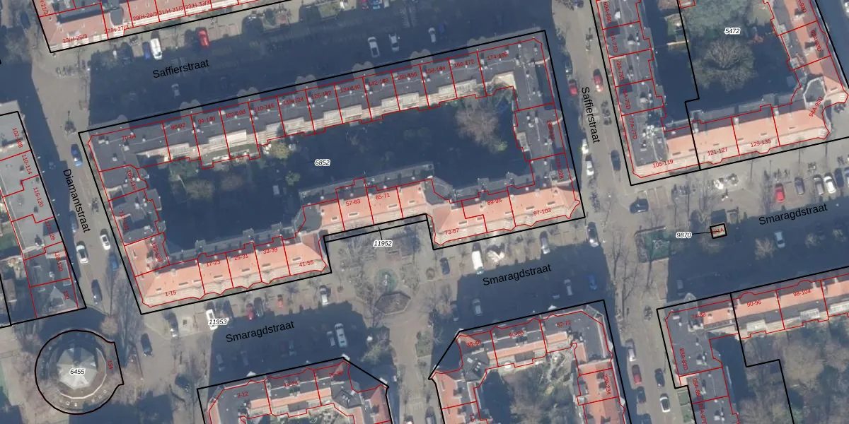 Smaragdstraat 81 is gelegen op kadastraal perceel ASD18V6852. Deze kadastrale aanduiding is uniek en wordt gebruikt door het Kadaster om eigendomsrechten en andere zakelijke rechten vast te leggen. Het perceel maakt onderdeel uit van de kadastrale gemeente Amsterdam.